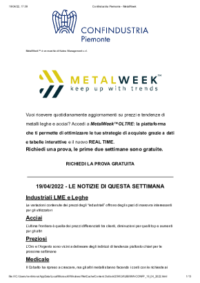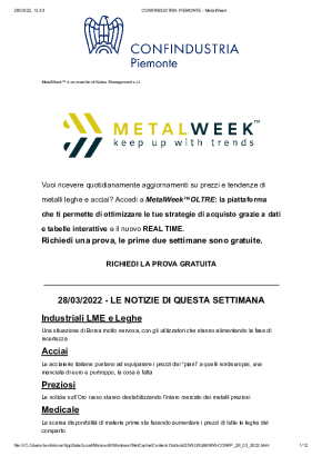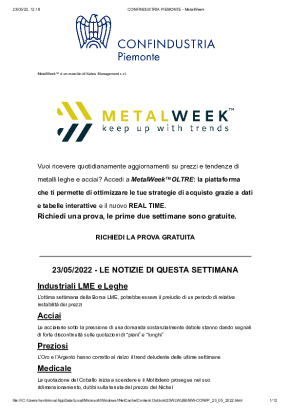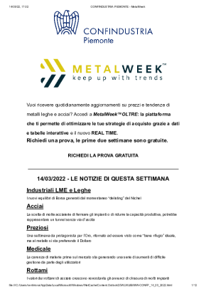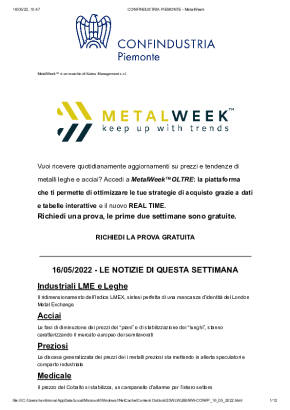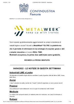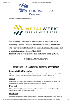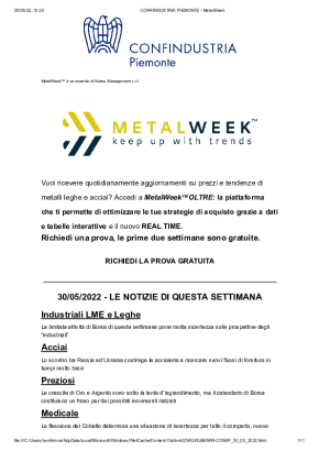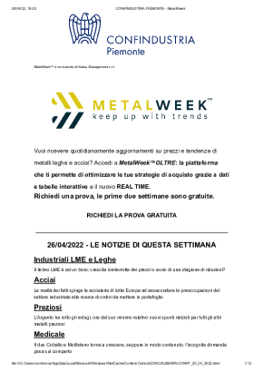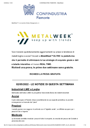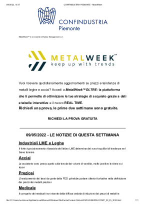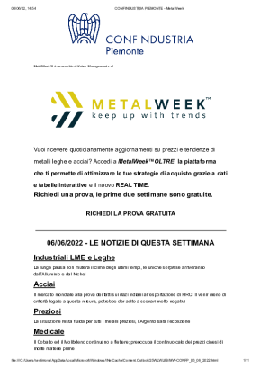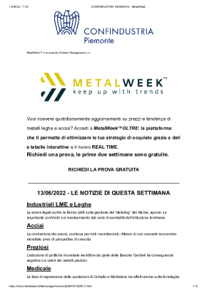 Con cadenza settimanale, dedicata all'analisi dell'andamento dei prezzi dei metalli. Si concentra sui trend più recenti, sulle previsioni di breve e di lungo periodo e sull'influenza dei tassi di cambio sull'acquisto di metalli e leghe.